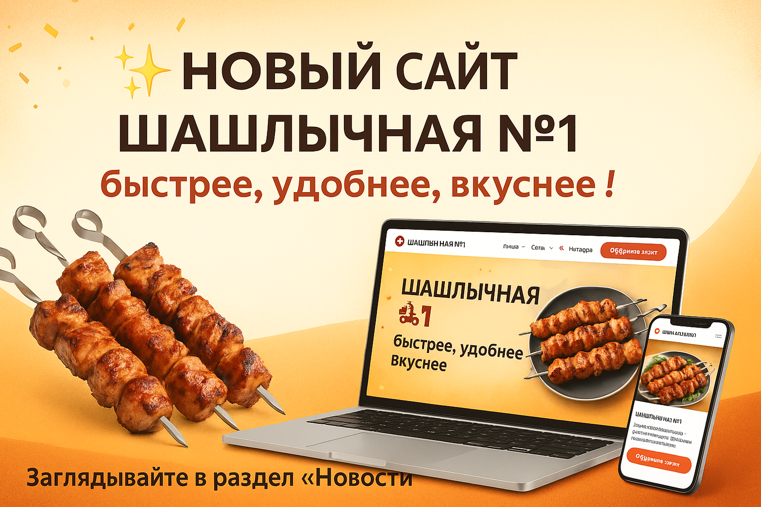 Мы обновили сайт «Шашлычной №1»: новый дизайн, быстрая работа и удобное меню для заказа шашлыка с доставкой. Заглядывайте в раздел «Новости и акции»!